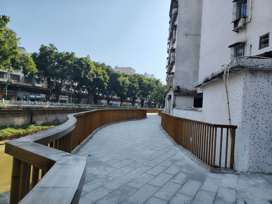 “漫行步道”是广宁县城管局为提升城市生活品质,对县城区一中桥至大迳桥范围内约5.7公里的南街河沿岸城市景观空间实施改造与提升工程,针对范围内尚未设置人行道的路段,新建符合标准的人行道,贯穿一河两岸“无缝对接”“一径到底”,工程致力于营造丰富多样的城市河岸景观序列,打造充满活力的休闲廊道,促进河流景观与县城区公共空间的深度融合。