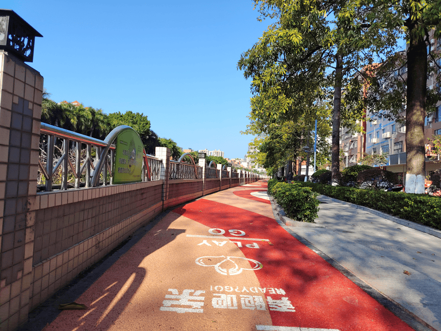 大迳桥口袋公园原来是城市的“边角料”,面积约700平方米,这次改造新铺设地砖约550平方米,路缘石115米。蓝色透水混凝土跑道约100米(宽约1.2米)设施有景观廊架坐凳。绿化方面铺设了大面积台湾草,种植树种有罗汉竹、黄蓉球、胡椒木球、红继木球、三脚梅、黄金间碧竹等,让居民在家门口就能触摸到“诗与远方”。
