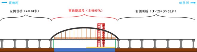 据了解,该桥总重约900吨,面对大吨位吊装、涉航作业、高空焊接等多重挑战,其中塌落部分系主体结构(在建中),新建桥梁主跨已基本建成。实景图如图3所示。