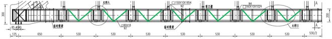 根据图纸,劲性骨架系梁仅拱脚处设有斜腹杆,其他位置只设有垂直腹杆,这种“空腹”结构在系杆拱劲性骨架中较为少见,可能会显著降低混凝土浇筑未形成强度时,系梁的抗弯强度与稳定性,如图12所示。设置斜腹杆则会显著提高抗弯强度,如图13所示: